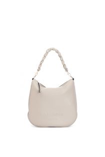tasche mit geprägtem logo und gewebtem kettenschulterriemen taupe