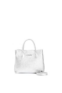 tasche mit röhrenförmigen henkeln aus metallic-leder silver