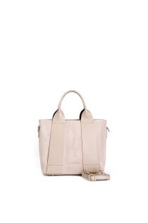 tasche mit röhrenförmigen wildledergriffen mit besatz aus gehämmertem leder nude