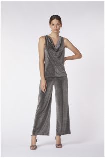 Ärmelloses oberteil mit weitem halsausschnitt und breiten schultern aus einem exklusiven stoff mit lurex. geeignet um ihre sommerabende zu etwas besonderem zu machen.