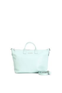 Trapezförmige tote bag aus leder mit griffen und optionalem schulterriemen.