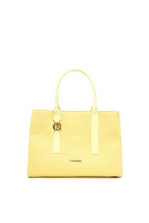 Tote Bag aus Strohpapier mit Griffen aus Kunststoff, die mit CN-Accessoire verziert sind