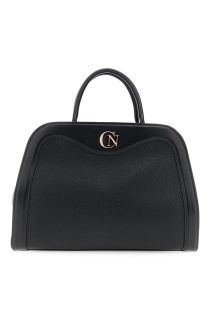 Tragetasche aus genarbtem Kunstleder mit geprägtem Rahmen und goldfarbenem Café Noir-Logo aus Metall. Sie verfügt über einen abnehmbaren Schulterriemen für vielseitige Einsatzmöglichkeiten.