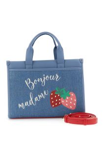 tragetasche aus canvas und nappa-leder mit tasche und stickerei denim