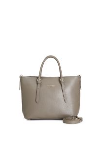 Tragetasche aus körnigem material mit wildledereffekt auf der vorderseite und griffbefestigung