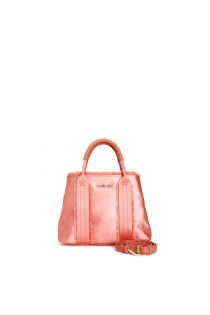 tragetasche aus satin mit fransen, röhrenförmigen henkeln und abnehmbarem schultergurt coral
