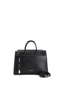 tragetasche mit geflochtenen henkeln, verzierter vordertasche und anhänger black
