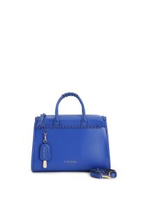 tragetasche mit geflochtenen henkeln, verzierter vordertasche und anhänger blue
