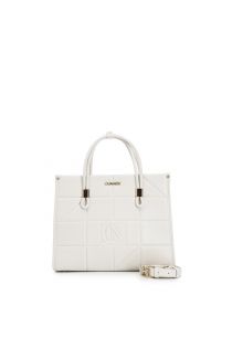 Tragetasche mit geprägter steppoptik und geometrischem muster. röhrenförmige griffe und goldfarbene details. verschluss mit reißverschluss. tasche mit schulterriemen.