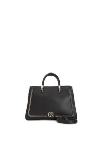 Tragetasche mit goldener metallkettenapplikation und cafènoir-logo. doppelt gepolsterter griff. doppeltes fach und doppelter reißverschluss. abnehmbarer schultergurt.