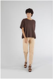 übergroßes t-shirt aus zwei materialien dark brown