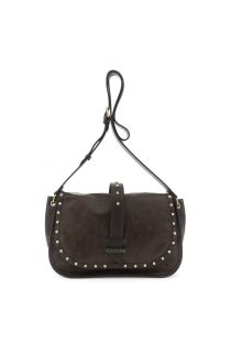 Die Tasche aus Kunstleder mit Used-Look und verwaschener Optik ist mit Nieten besetzt und verfügt über einen zentralen Riemen. Metallbuchstaben, eine Rückentasche und ein verstellbarer Schulterriemen verleihen ihr einen markanten Touch.