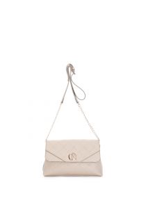 überschlag mit allover-logoprägung und kettenschulterriemen tortora