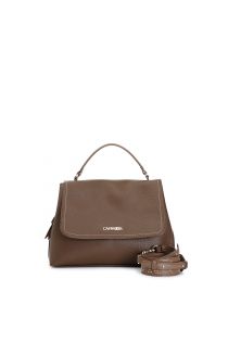 Überschlag mit weicher struktur mit anhängern und abnehmbarem schultergurt mit logo und nieten. in verschiedene fächer unterteilte tasche: eine mit reißverschluss verschlossene trennwand und eine innentasche mit reißverschluss. magnetverschluss.