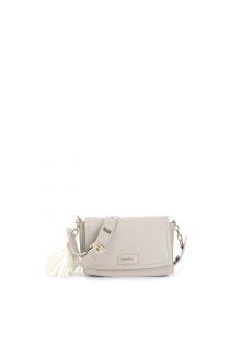 überschlag mit großem blumenanhänger aus stoff, griff mit normaler schnalle tortora