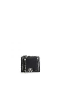 Überschlag mit nietenapplikationen und metallverschluss schultergurt mit kette. tasche mit einem einzelfach und einer innentasche mit reißverschluss.