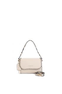 überschlagtasche mit faden, geflochtenem griff, eiscreme-anhänger und schultergurt sand