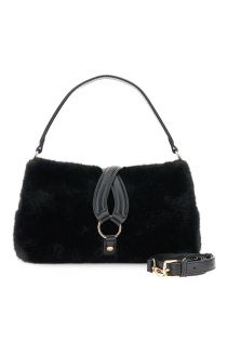 Schultertasche aus Kunstpelz mit Zierband und Ring. Logo auf der Rückseite und abnehmbarer Schulterriemen mit Karabinerhaken für vielseitigen und eleganten Tragekomfort.