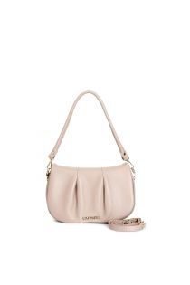 umhängetasche mit klappe und falten auf der vorderseite nude