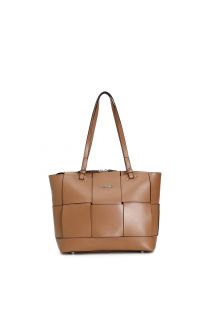 ungefütterter shopper mit eingeflochtenen breiten bändern tan