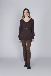v-ausschnitt-pullover mit gürtel dark brown