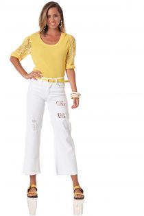 VISKOSE-TRIKOT MIT SPITZENÄRMELN