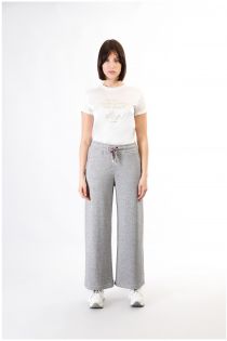 Sporthose im palazzo-stil mit kordelzug in der taille. hergestellt aus einem viskose- und lurex-sweatshirt mit warmer haptik. extrem vielseitig perfekt für die aktualisierung ihrer täglichen garderobe.