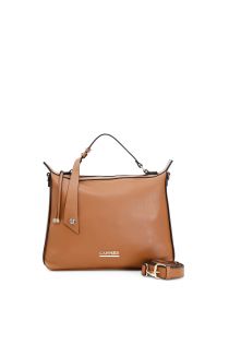 Weiche, geräumige Bauletto-Tasche, mit einem Anhänger mit Logo-Niete verziert