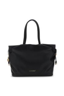 weiche einkaufstasche in lederoptik mit genarbten und gerüschten seiten black