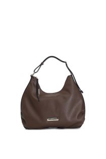 weiche einkaufstasche mit kontrastierenden kanten, etikett mit cn-logo aus metall dark brown