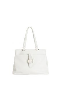weiche einkaufstasche mit vordertasche und metallgeflechtschlaufe white
