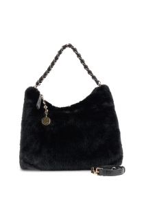 Weiche Kunstfelltasche mit Kettenhenkel und Metallanhänger mit Café Noir-Logo. Abnehmbarer Schulterriemen für vielseitigen und eleganten Tragekomfort.