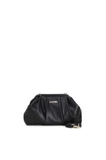 Pochette aus weichem material mit falten schnappverschluss und verstellbarem schulterriemen.