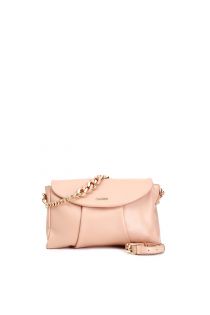 Umhängetasche mit weichem überschlag und zentraler falte. metall-logo. doppelter schultergurt entweder aus zweifarbiger kette oder aus dem gleichen material wie die tasche. magnetverschluss.