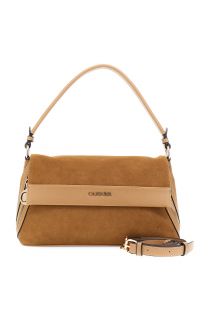 Weiche Tasche mit Klappe in Wildlederoptik, Reißverschluss-Schriftzug und Metallanhänger. Abnehmbarer Schulterriemen und schickes Design für einen femininen und modernen Stil.