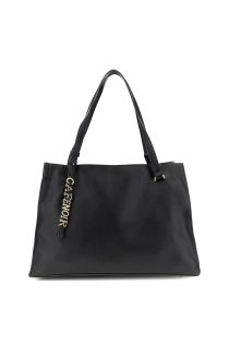 Weiche Tasche aus Kunstleder mit genarbter Optik, großzügig geschnittenes, weiches Design und ungefütterte Henkel mit großem Metallschriftzug, ausgestattet mit einer großen flachen Innentasche mit Reißverschluss.
