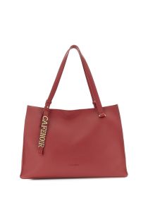 Weiche Tasche aus Kunstleder mit genarbter Optik, großzügig geschnittenes, weiches Design und ungefütterte Henkel mit großem Metallschriftzug, ausgestattet mit einer großen flachen Innentasche mit Reißverschluss.