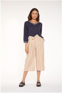 Pullover aus Viskosegarn mit weicher Passform und Lurexdetails an den Bündchen und am Halsausschnitt. Der weite, V-förmige Halsausschnitt setzt Lichtakzente und wird so zum Blickfang.