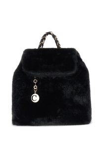 Weicher Rucksack mit Kunstfellklappe, Kettenhenkel und Metallanhänger mit Café Noir-Logo. Perfekt für einen glamourösen Look und hohen Tragekomfort im Alltag.
