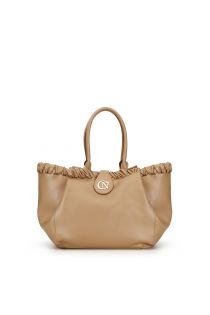 Shopper aus weichem material mit einfädelungen und cafènoir-riegel.