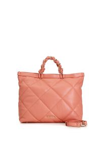 Shopper aus weichem material mit rautenförmiger steppung und kettengriff mit einfädelungen.