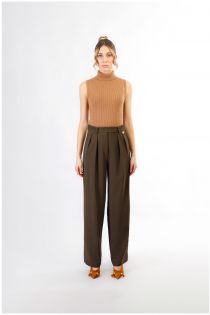 Weite hose mit geradem bein falten vorne und leicht hoher taille aus bi-stretch-stoff. taille mit gürtelschlaufen und reißverschluss und knopfverschluss. das ideale kleidungsstück für sportlich-schicke looks dank der kombination aus komfort und eleganz die das kleidungsstück immer modisch macht.