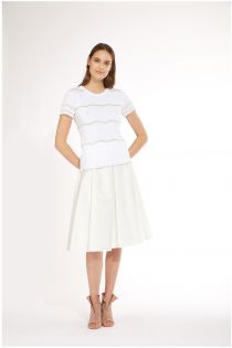 Unvergänglicher, feiner halber Tellerrock aus Baumwollstoff mit schmalem Gürtel. In vielen einfarbigen Nuancen erhältlich.