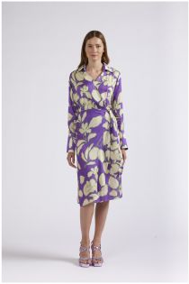 Elegantes langärmeliges kleid aus leichtem bedrucktem viskose-satin. v-ausschnitt. perfektes kleid für einen feierlichen look.