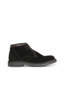 Herren-schnürstiefelette aus wildleder mit lederbesatz. das obermaterial ist mit der sohle vernäht. innensohle aus leder.