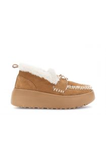Damen-Loafer aus Wildleder mit goldenen Akzenten. Das Futter aus Kunstfell sorgt für maximalen Tragekomfort. Die 4 cm hohe Plateausohle garantiert einen bequemen, warmen und eleganten Look.