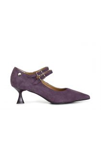 Damen-pumps aus wildleder in einem eleganten und femininen stil. die schuhe sind mit zwei riemchen auf dem spann ausgestattet. höhe des diabolo-absatzes 65 mm. weiche innensohle aus leder.