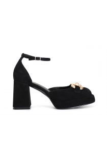 wildleder-pumps mit schnürung und accessoire black