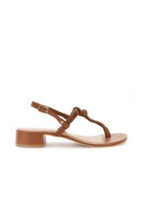 Leder-flip-flops mit schlichtem design weichen riemen und einem zentralen knoten. niedriger 3.5-cm-absatz verstellbarer riemen und bequemes fußbett. angenehm zu tragen stylisch und perfekt für jeden tag.
