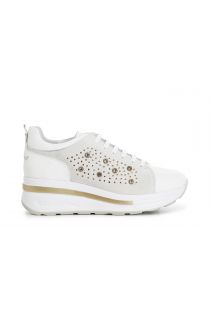Wildleder-sneaker mit lederbesatz und nieten- und strassmotiv. zweifarbige 40-mm-keilsohle mit geprägtem logo.